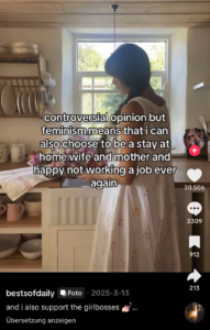 - Schuster, K. (2024). Warum der „Tradwife“-Trend gefährlich ist. zdf heute. https://www.zdfheute.de/politik/ausland/tradwife-bewegung-trend-tiktok-100.html